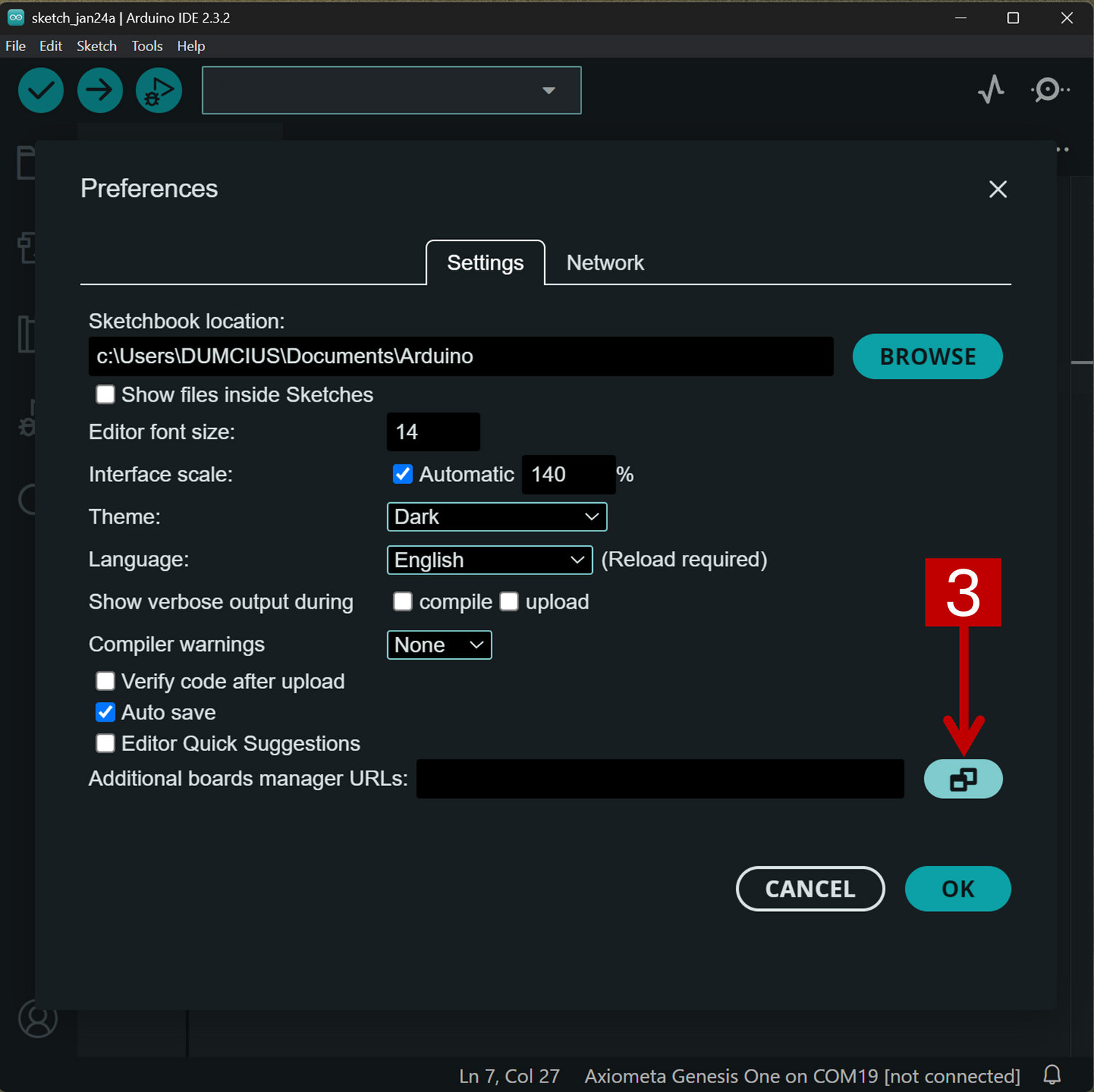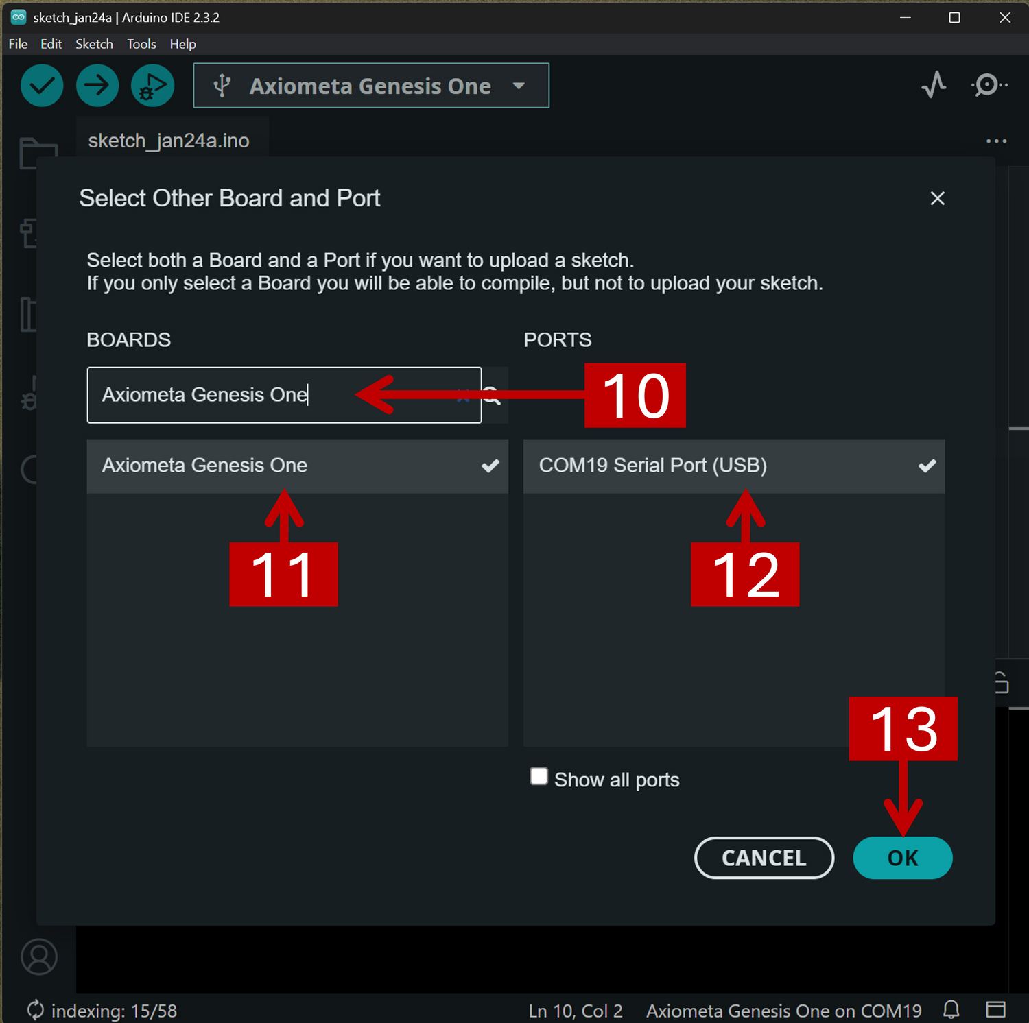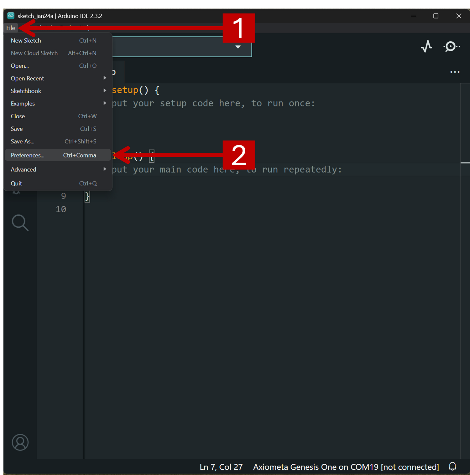 We need to tell Arduino IDE which to which USB port the GENESIS One is connected to.