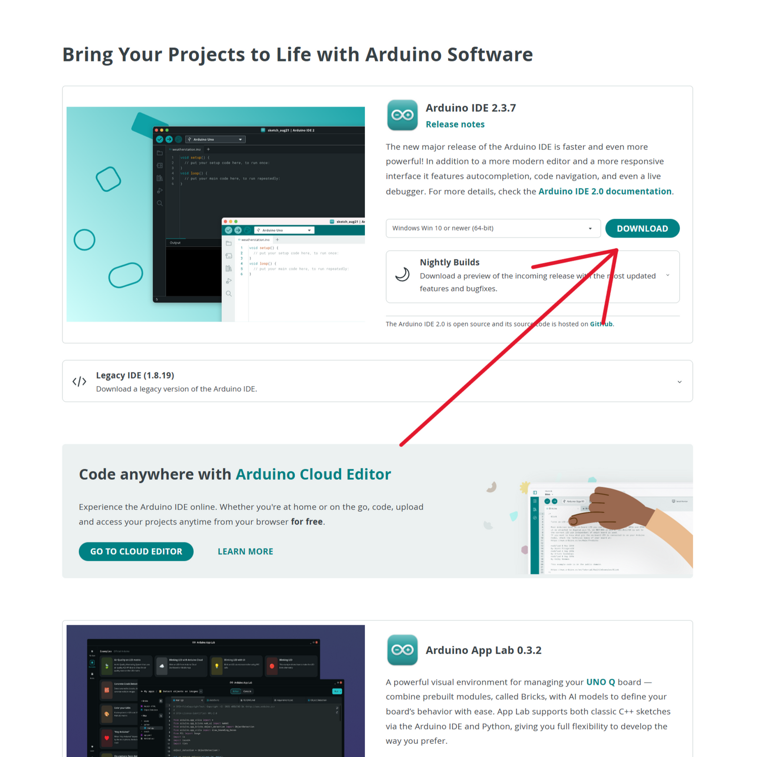 - Download the latest version of Arduino IDE (2.0 or newer recommended)
