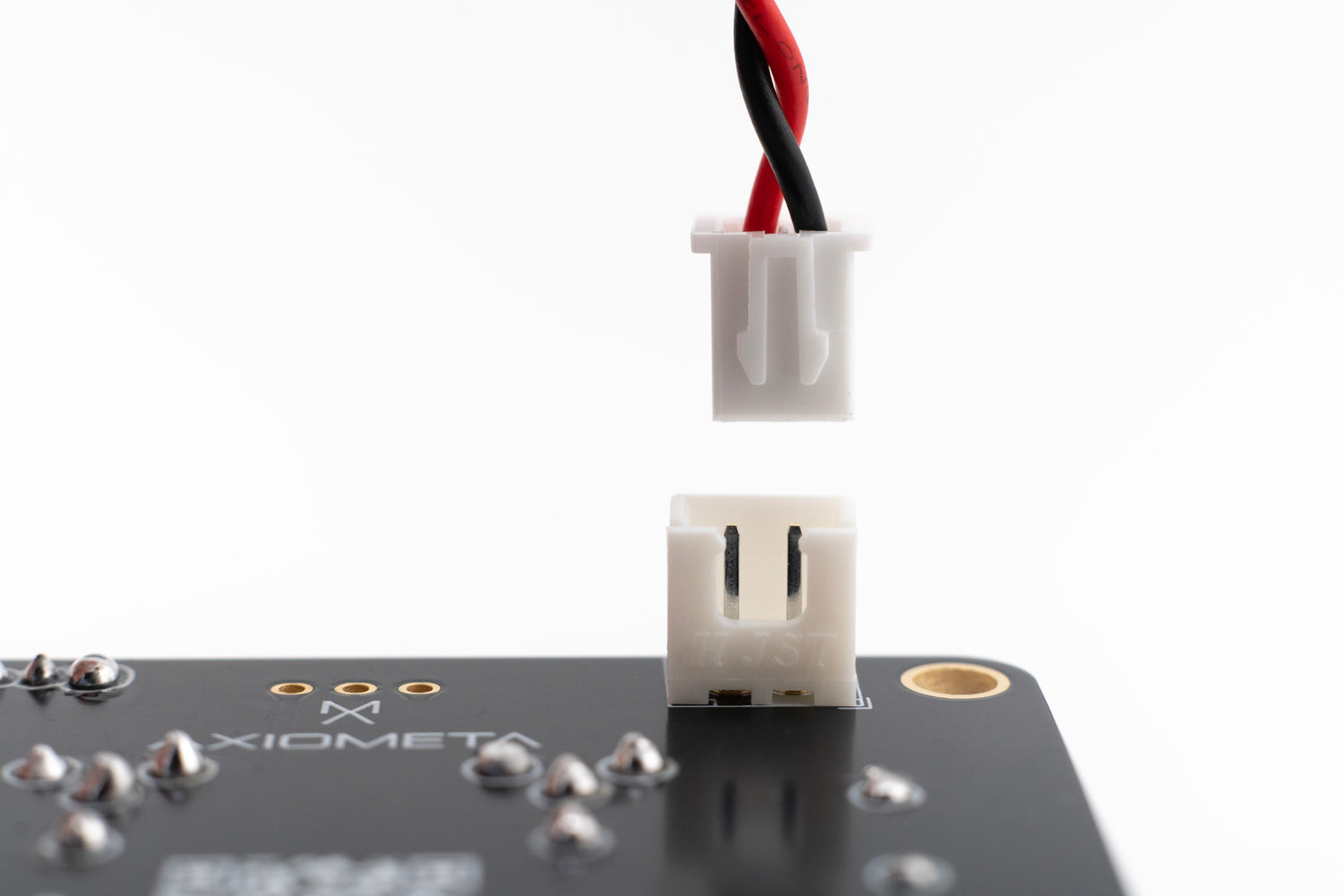 Flip the board to the underside and install the battery connector in this orientation as shown. Be careful not to install it backwards!