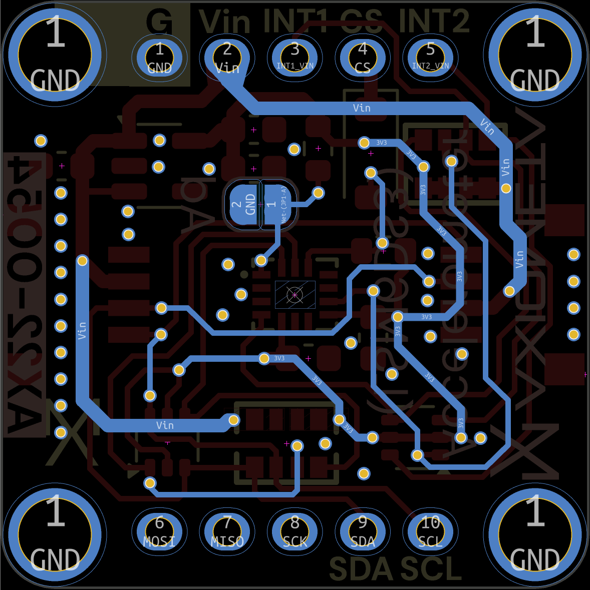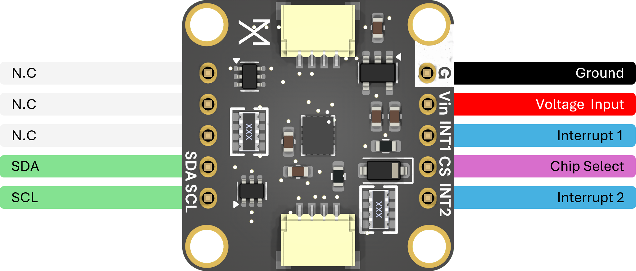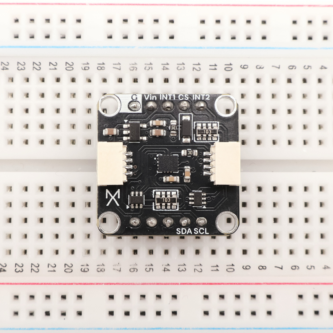 Add precise 6-axis motion sensing to your projects with this compact IMU module. The LSM6DS3 combines a 3-axis accelerometer and 3-axis gyroscope in one package, perfect for motion tracking, gesture recognition, activity monitoring, or stabilization systems. With selectable ranges up to ±16g for acceleration and ±2000 dps for rotation, it handles everything from subtle movements to high-speed motion. Two STEMMA QT connectors make I²C daisy-chaining simple, while dual interrupt pins let you wake on motion, tap detection, or orientation changes. The sensor's built-in FIFO buffer and pedometer functions offload processing from your microcontroller. Drop it into any AX22 backplane and start sensing motion with Arduino IDE, MicroPython, or MicroBlocks.