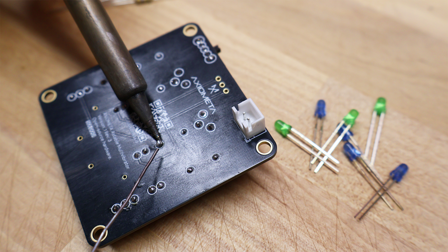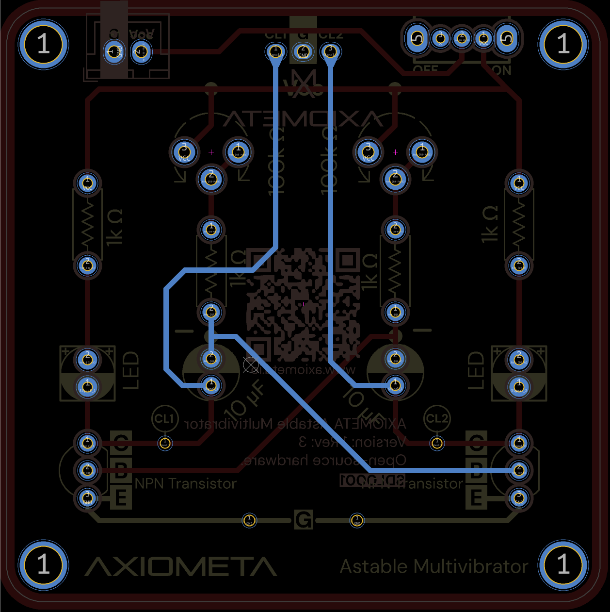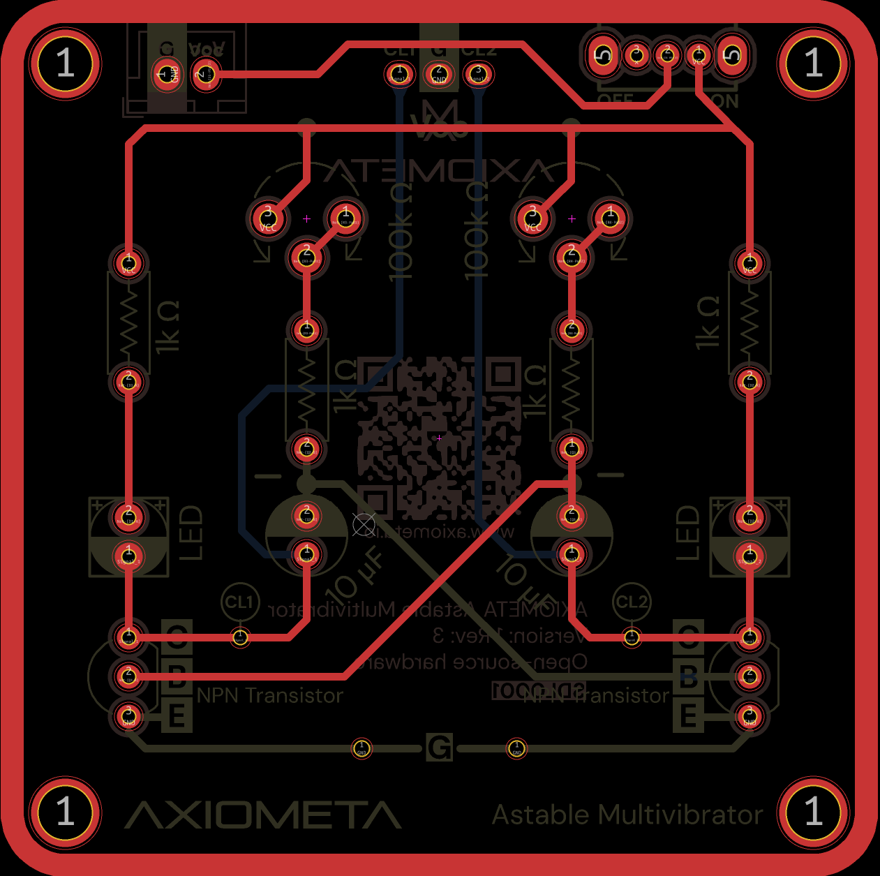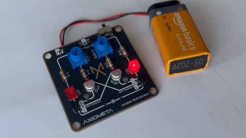 The Astable Vibrometer is a hands-on soldering project designed to demonstrate how alternating signals are generated using a flip-flop configuration. Two LEDs visualize the oscillation, switching back and forth in rhythm with the circuit’s timing.