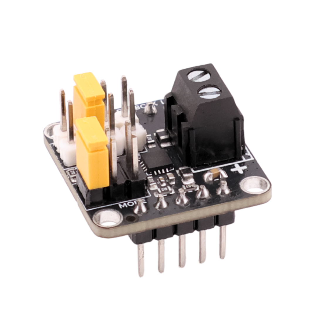 Drive speakers directly from your microcontroller with this powerful I²S audio amplifier. The MAX98357A delivers 3.2W into 4Ω or 1.8W into 8Ω speakers, perfect for adding clear audio output to voice projects, music players, or notification systems. Just send digital audio over I²S and the amplifier handles everything else, including DAC conversion and filtering. Gain can be adjusted via jumper pads (3dB, 6dB, 9dB, 12dB, or 15dB), with 9dB set by default. You can also configure stereo mode by selecting left or right channel, though it defaults to mono for simpler single-speaker setups. Two screw terminals make speaker connection straightforward. Drop it into any AX22 backplane and start playing audio with Arduino IDE, MicroPython, or MicroBlocks.