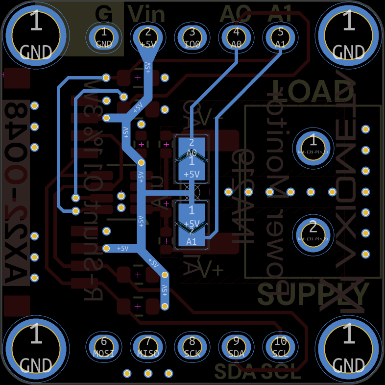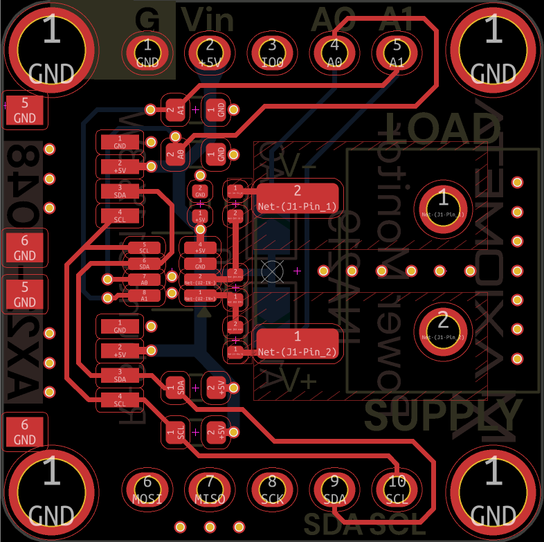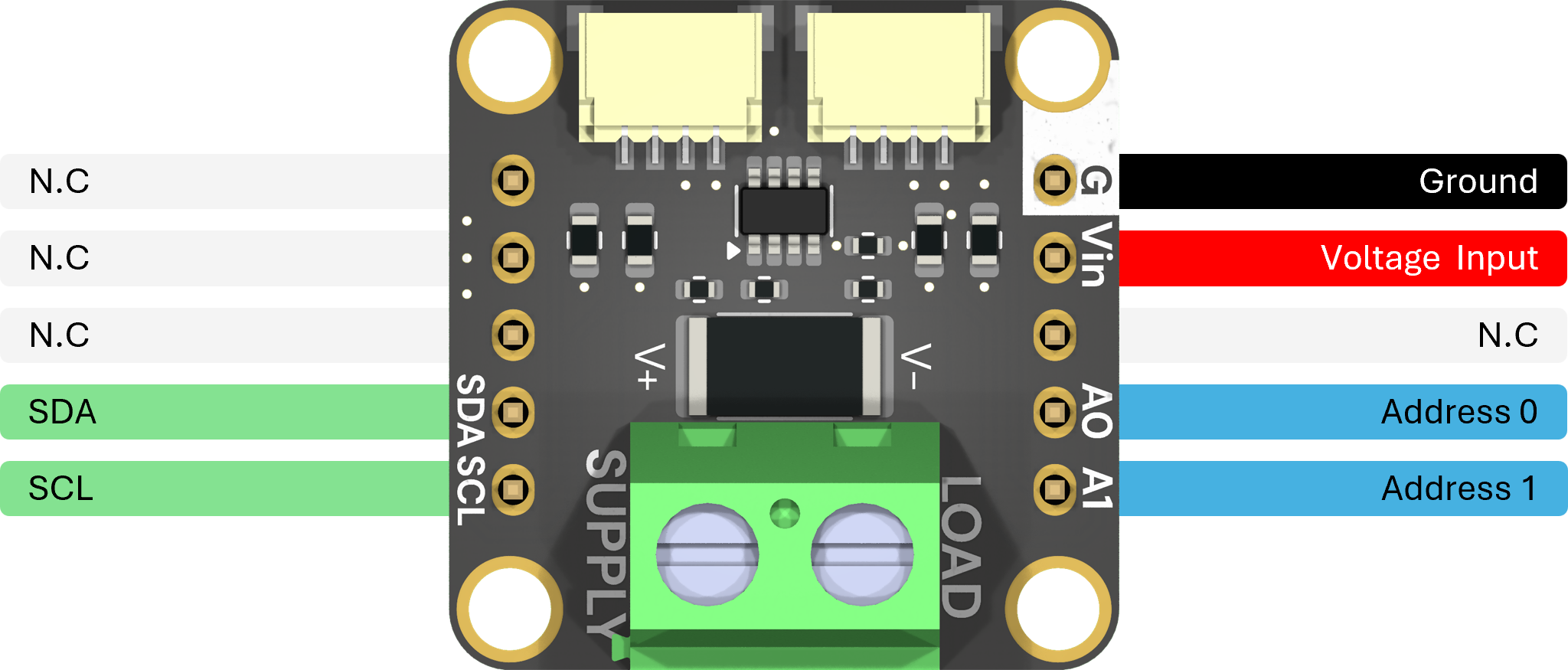 Monitor voltage, current, and power consumption in real time with this INA219-based sensor module. Measure up to 26V and 3.2A on the high side without disrupting your circuit, perfect for battery monitoring, solar projects, or tracking power draw in embedded systems. The onboard INA219 handles the math internally, delivering voltage, current, and power readings over I²C so your microcontroller doesn't have to crunch numbers. Screw terminals make it easy to insert into your power path, while STEMMA QT connectors let you daisy-chain I²C devices. Drop it into any AX22 backplane and start tracking power consumption with Arduino IDE, MicroPython, or MicroBlocks.