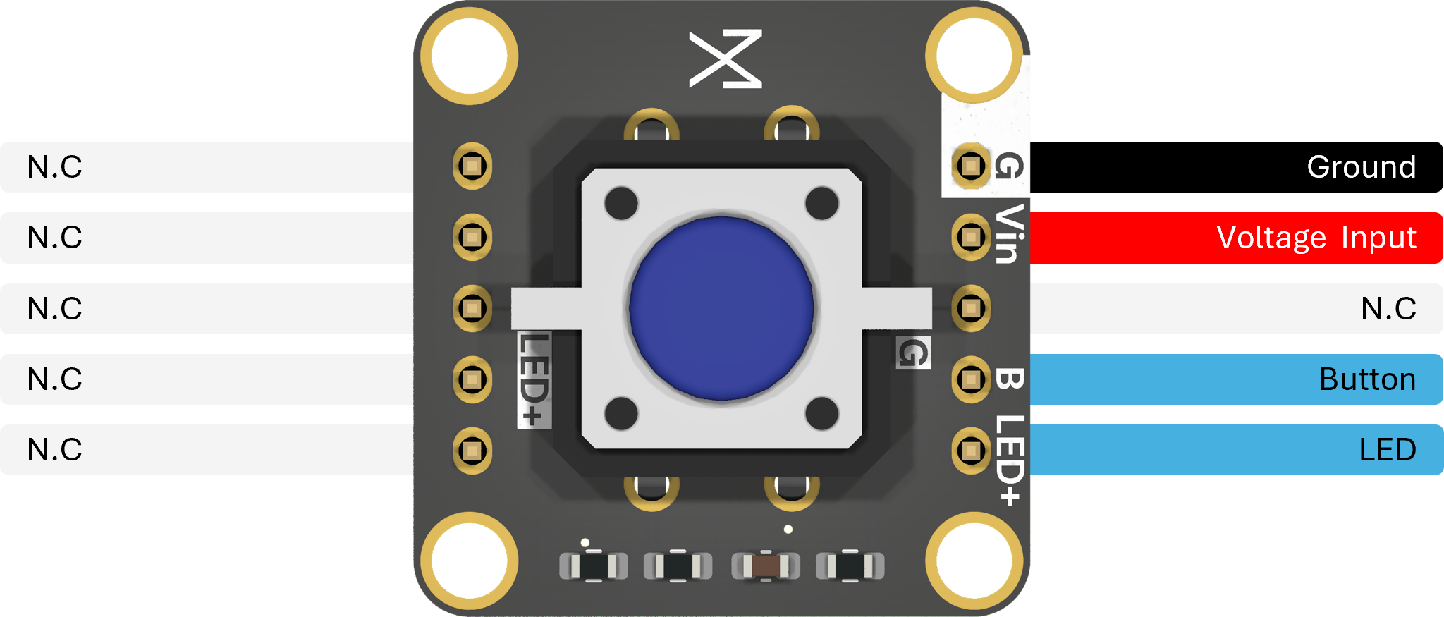 Add a clicky button with built-in LED feedback to your projects. This tactile switch module features a large 12mm button with a crisp mechanical feel, hardware debouncing for clean signal readings, and an integrated white LED for visual confirmation. Perfect for user interfaces, control panels, or any application where you need reliable button input with illumination. The onboard RC filter eliminates bounce, so you get clean press detection without extra code. The LED can be controlled independently, letting you indicate status, provide feedback, or create attention-grabbing effects. The button comes in different cap colors to match your project's aesthetic, while the white LED stays consistent across all variants.